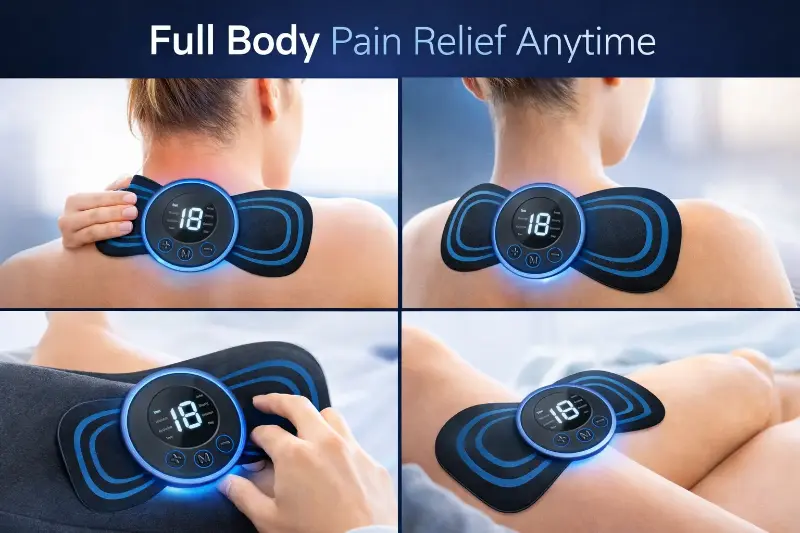...Save 44%Relieve neck, shoulder, and body pain instantly with this wireless EMS massager. Features 8 modes, 19 intensity levels, and a rechargeable portable design for use anytime, anywhere.